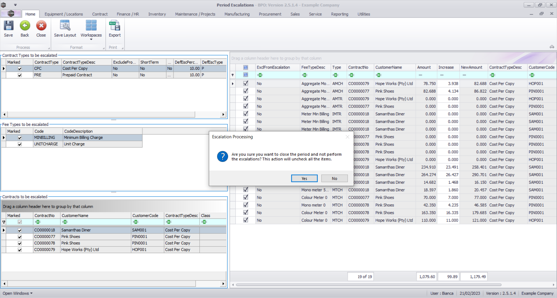 - No contract items are selected. Are you sure you want to close this escalation period with no escalations applied?