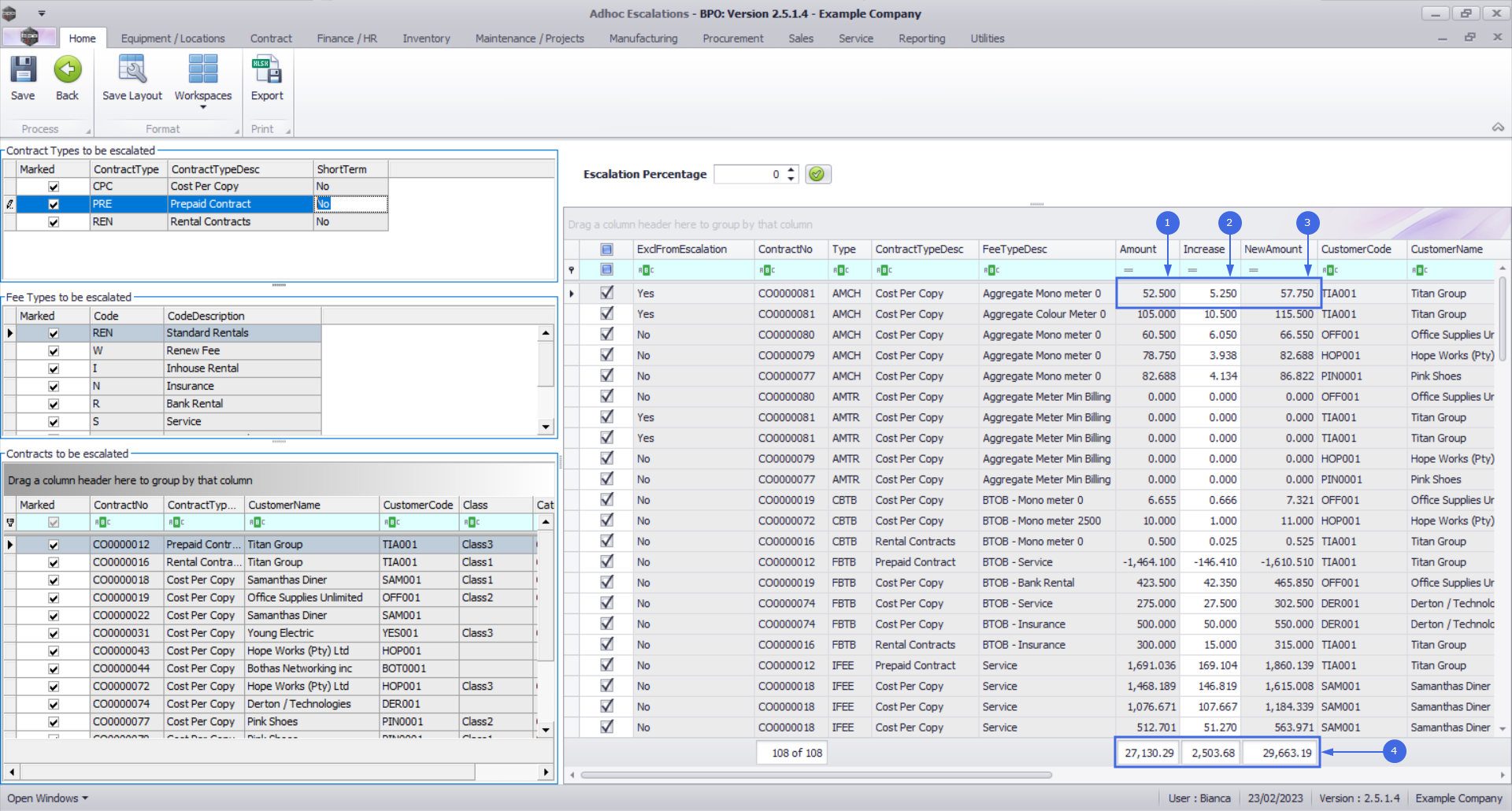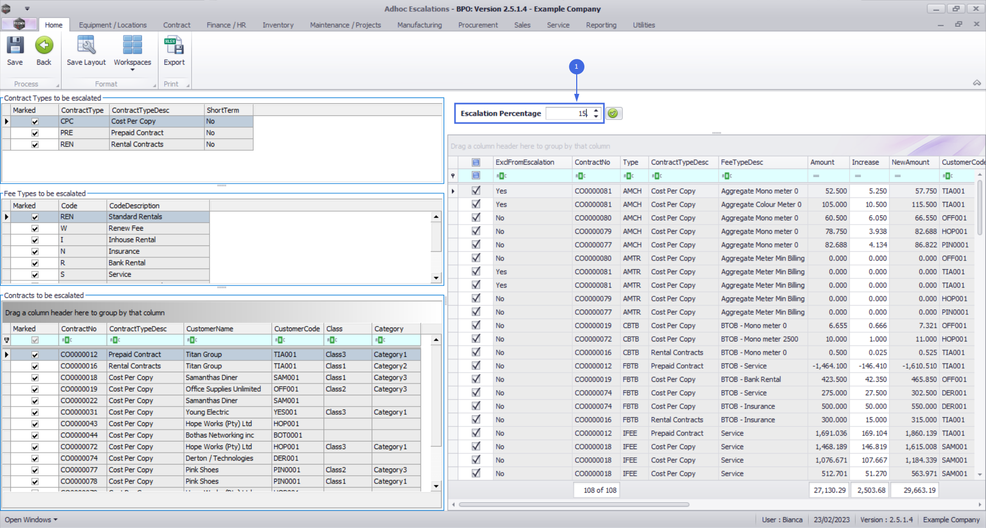 - This means that all the contract types and fees will be affected by any adhoc escalation changes that are made in this screen.