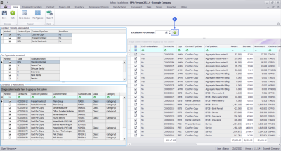 The Adhoc Escalations screen will be displayed, listing all Active contracts. This screen is divided into 4 frames: