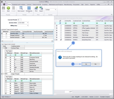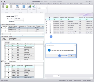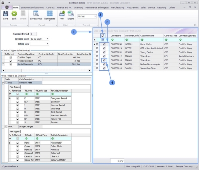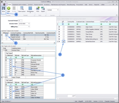 - Note: This will only generate billing for contracts which have Rental or Service charges set up.