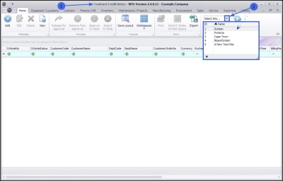 1. In the Contract Credit Notes listing screen, select the Site.