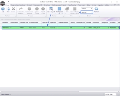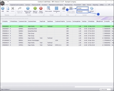 Ribbon Access:   Contract   >   Contract Credit Notes