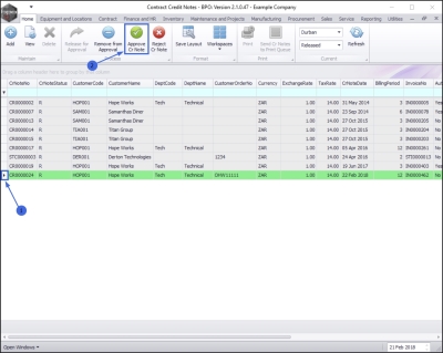 1. Select the row of the contract credit note that you wish to approve.