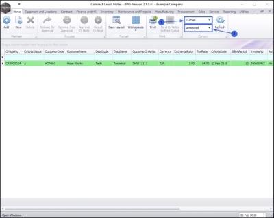 • The selected credit note has been moved to the Contract Credit Notes listing screen where the status is set to Approved.