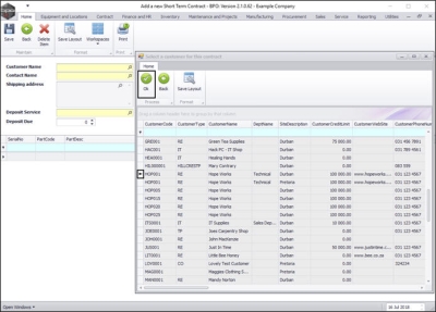 - Select the row of the customer that you wish to create a short term contract for.