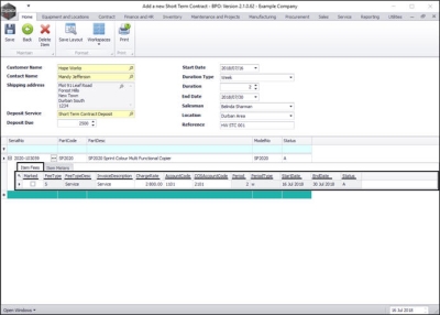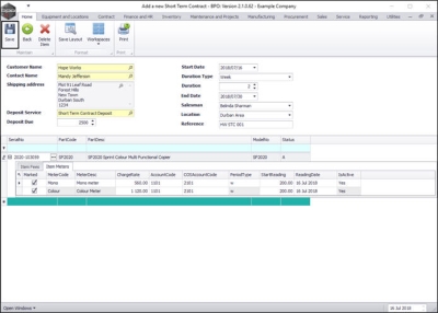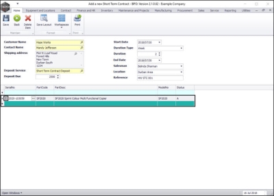 - If you wish to add additional items to this contract, click in the Serial No field in the new row of the Parts frame.