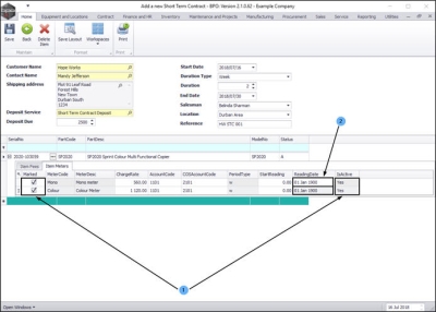 - Now go to the Reading Date fields and either type in or click on the drop-down arrow and use the calendar function to select the date. (This reading should be taken on the date the contract starts - so that the contract invoice will be correct).