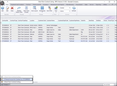 A Short Term Contract Invoice is created at the end of the contract. (Multiple invoices can be raised, if for example, the contract is extended).