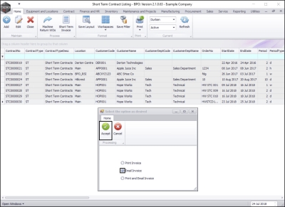 - The email will be sent via the BPO Email Service on the server and you will return to the Short Term Contract Listing screen.