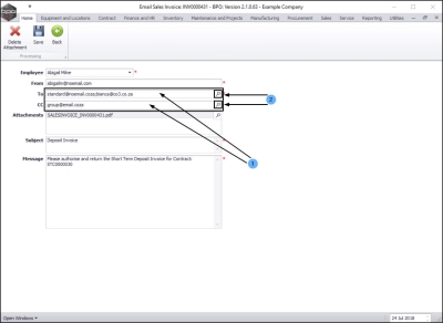 - To: This will auto populate with the email address of the customer contact selected on the deposit invoice (the accounts person will be always added to this).