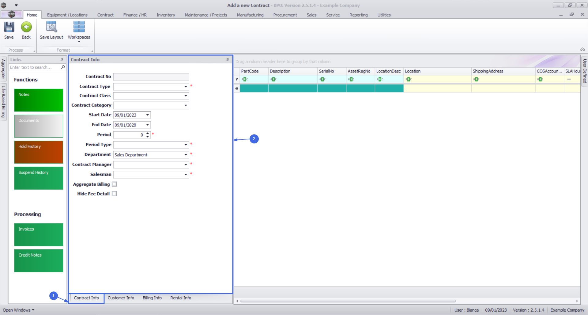 - Note: The Billing Period relates to the financial period of the company e.g. if the company's financial year ends on 31 December and a contract is to be billed in February, the Billing Period would be 2.