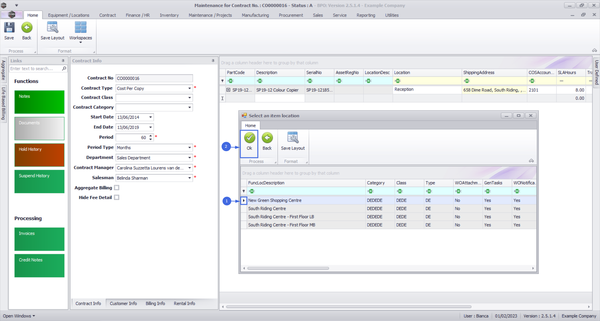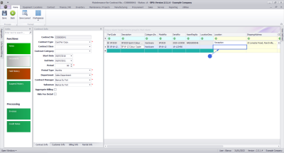 Note: The LocationDesc column will not be populated as this is a Machine (asset) Contract item and not a Location Contract Item.