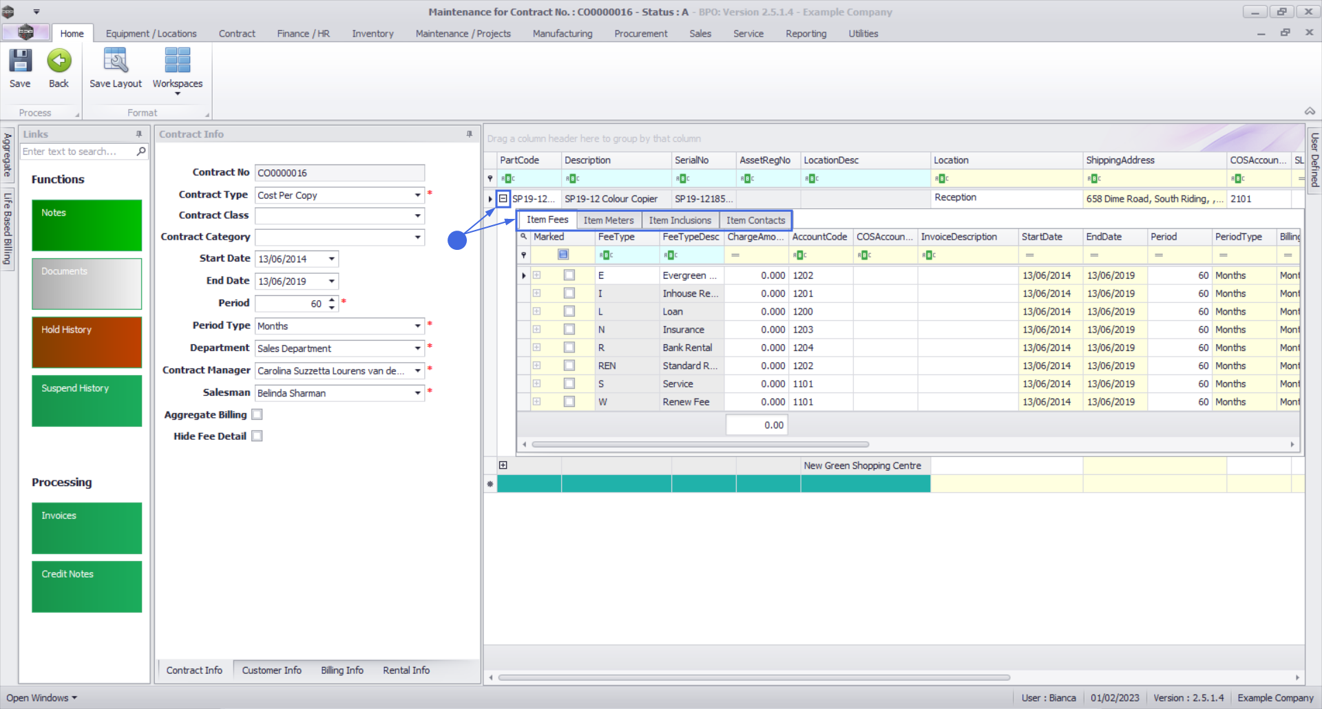 Where you have a serialised item that requires maintenance or service, the item can be linked to the contract.