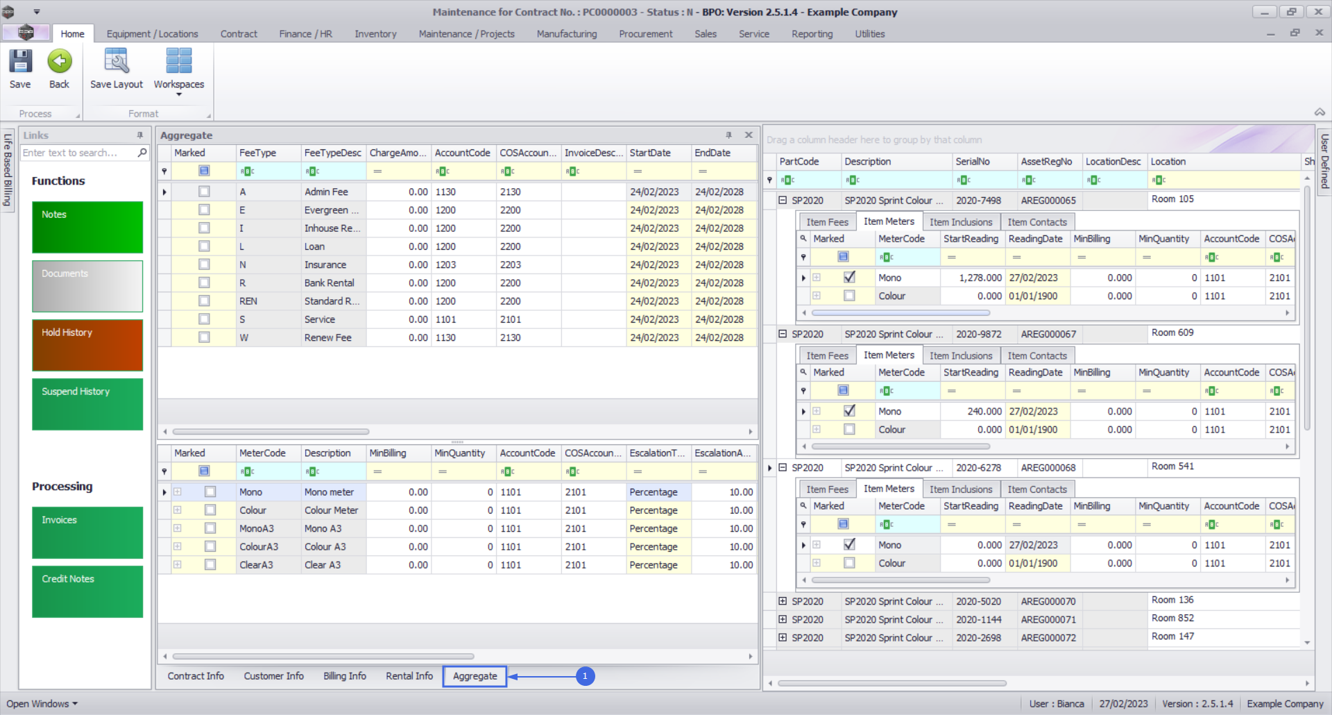 - If a combination of aggregate and standard meter billing is required: One meter type (e.g. Mono) may be set as aggregate, and other meter type (e.g. Colour) may be set to standard meter billing. Note that the type of billing will apply to all items with that meter type.