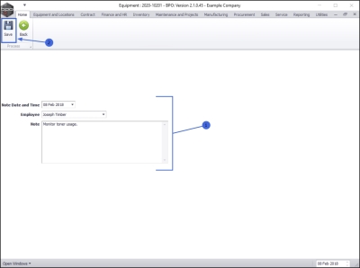 - Note: Click in the text box and type in the relevant note information, as required.