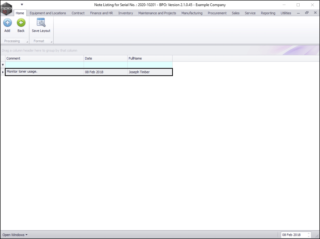 - You can now view the logged note in the Comment section of this screen.