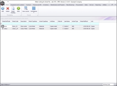 - Select the row of the serialised item where you wish to reset the meter reading.