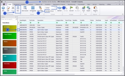 The View button in the Asset Listing screen (Machine List for [] screen) allows you to view more details about a selected asset.