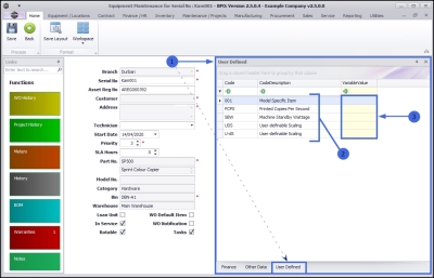 - The added custom fields will reflect in the User Defined panel in the Asset Maintain screen across all assets on the system.
