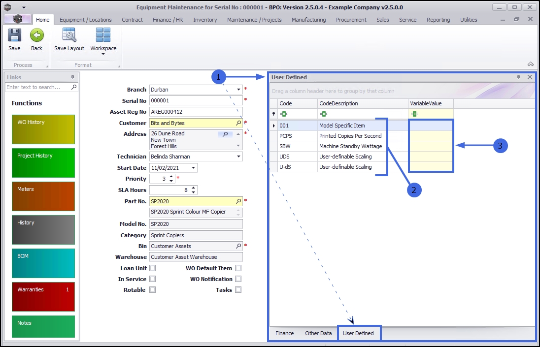 - The added custom fields will reflect in the User Defined panel in the Asset Maintain screen across all assets on the system.