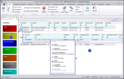 - Right click in the row of a selected Work Order to display the work order Process menu.