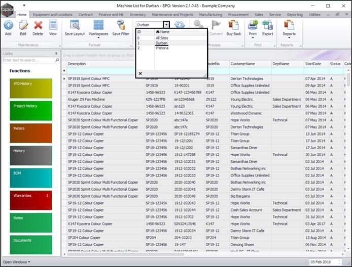 - You can now view the transferred item in the Machine list for [] screen where the status is set to Serialised Stock.