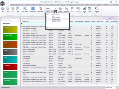 - Select the row of the serialised item that you wish to convert from an internal asset to stock.