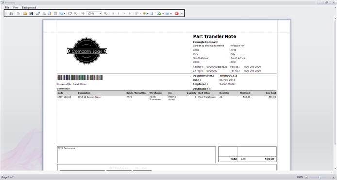 - The Stock transfer, doc number, has been created successfully. Do you wish to print the Transfer Note?