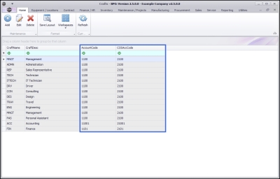 You will note that Account Codes and COS Account Codes are linked to crafts.