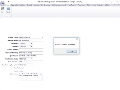 - Training Course has been saved.