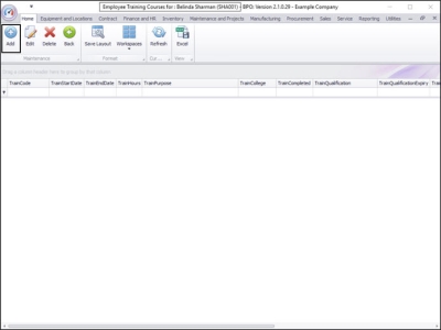 The Employee Training Courses for : [] screen will open.