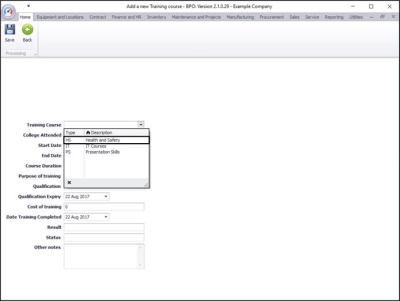 A Training Course Type menu will be displayed.