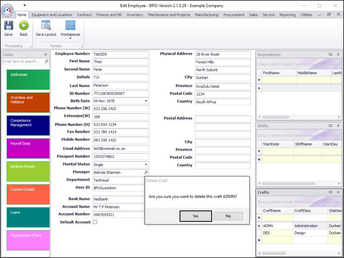 It may be necessary to unlink a particular craft from an employee. For example, the employee may be transferred to a different department within the company. The skill set (craft) required for the previous position may no longer be utilised in the new position.
