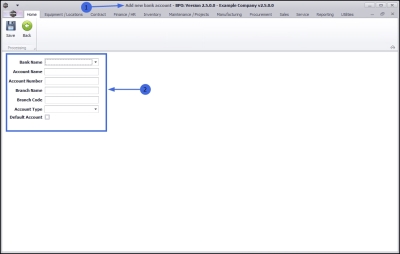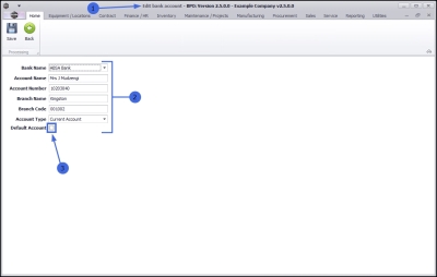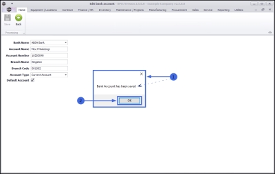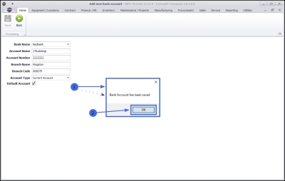 Note on Default Account Settings: Selecting the bank account as default 'Yes', will set any other accounts in the data grid to 'No' as only one Default Account can be set up.