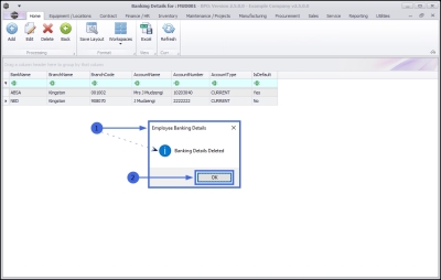 Here you can view, Add, Edit and Delete any additional banking details set up on the employee (as well as the ones you can view in the Edit Employee screen)