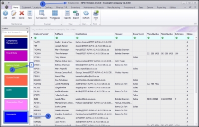 | Ribbon Access: Finance and HR > Employees |