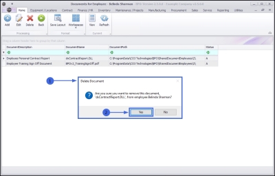 - A Delete Document message box will pop up with the following prompt: