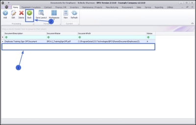 - Select the row of the employee whose document you wish to open and view.
