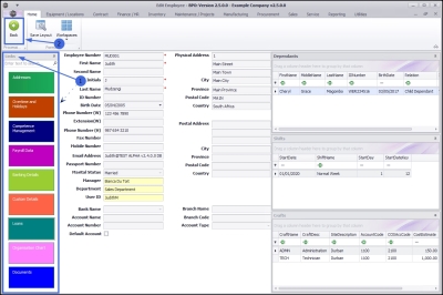 - Here you can view all the information that has been entered into the system for this employee. For a more detailed explanation of the fields in the main data grid refer to Add Employee.