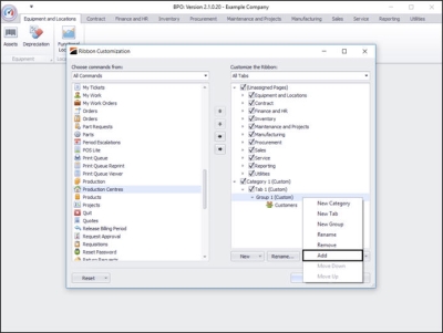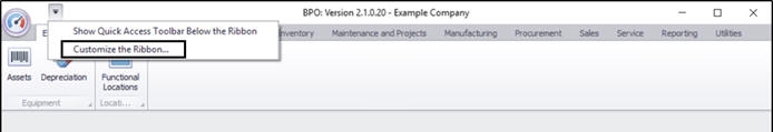 You can customize the BPO ribbon to arrange tabs and commands in the order you want them, hide or unhide your ribbon, and hide those tabs and commands that you use less often.