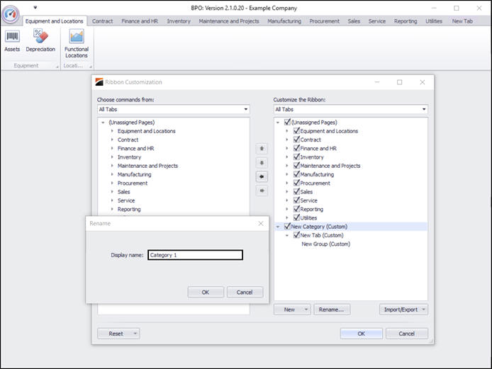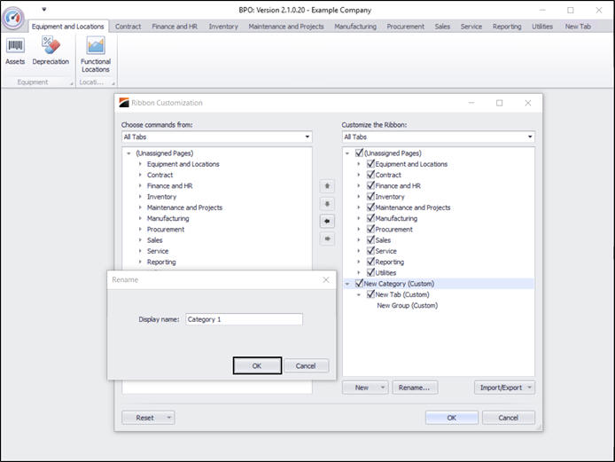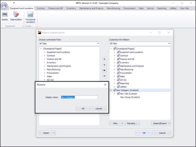 - All Categories and All Tabs can be renamed but New Groups can be renamed and have any Commands added to them.
