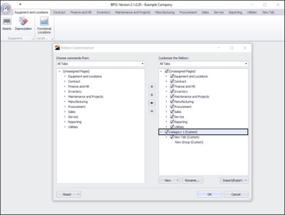 - This list is static and reflects the way your ribbon has automatically been configured on installation of BPO2.