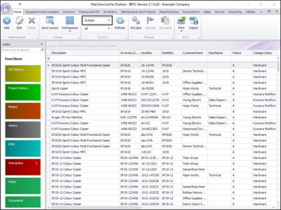 • Most Listing screens contain a Links panel that contains Functions and Processing tiles.