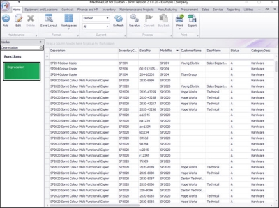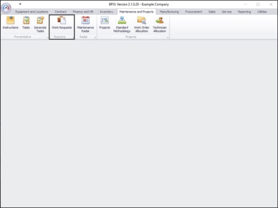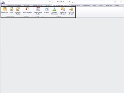 • In this example, the ribbon toolbar of the Maintenance and Projects ribbon tab is displayed.