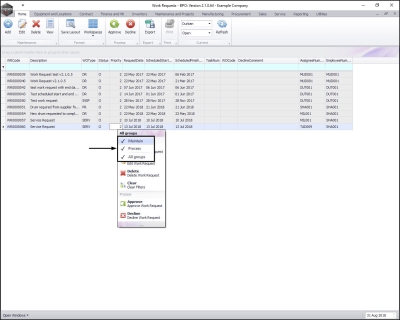 • In this example, you can select to view the Maintain action button, the Process action buttons or All Groups (all the available action buttons) in this menu.