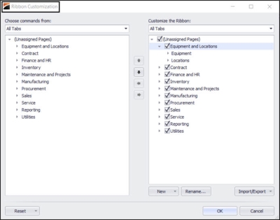 • For further information on this topic go the Ribbon Configuration manual.