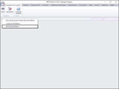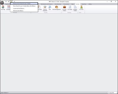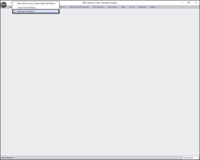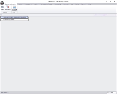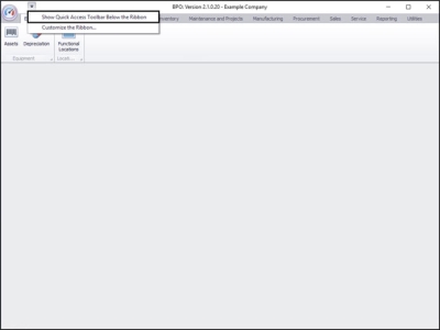 • When you first set up BPO2 the Quick Access Toolbar icon is located above the Ribbon.