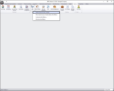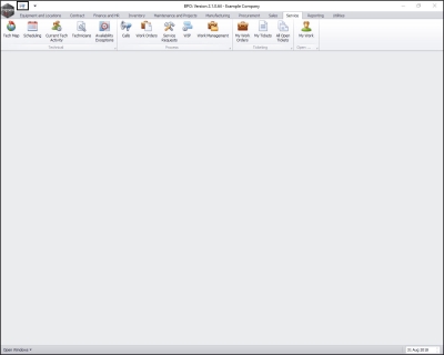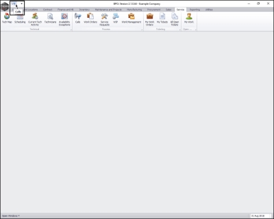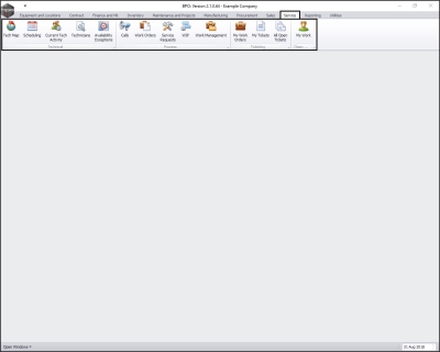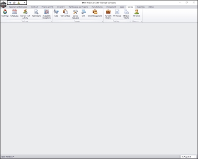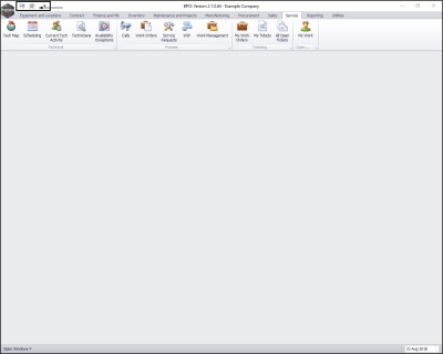 • In this image, the Service ribbon tab has been selected.