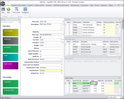 - Yield: Click in this text box and either type in or use the arrow indicators to select the yield amount in meter units, e.g. 5000 (this toner will yield 5000 copies).