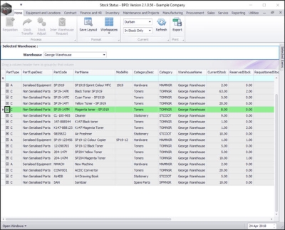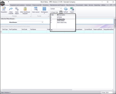 - The parts data grid will now display a list of all the stock item types available on hand in the Current Stock column.